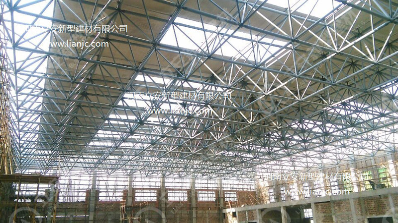 鋼骨架輕型板適用于輸煤棧橋、公共民用等建筑圍護屋面、樓面、墻面.鋼骨架輕型板由輕型鋼骨架、冷拔鋼絲網(wǎng)、改性水泥珍珠巖復(fù)合芯材(專有技術(shù))、復(fù)合抗?jié)B耐磨涂層(專有技術(shù))組成.鋼骨架輕型板集輕質(zhì)、承重、節(jié)能、防火、隔聲、泄爆、抗震等功能于一體,既保持了傳統(tǒng)鋼筋混凝土構(gòu)件安全度高、使用壽命長的優(yōu)點,又滿足了現(xiàn)代建筑對輕質(zhì)、節(jié)能、環(huán)保的要求。